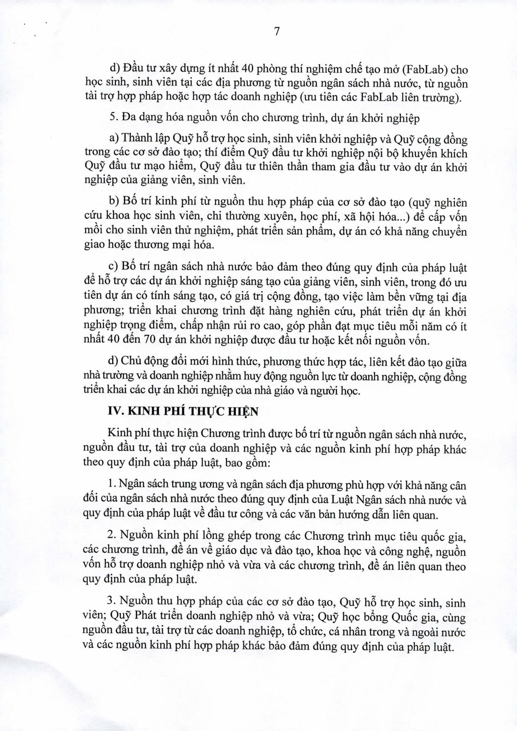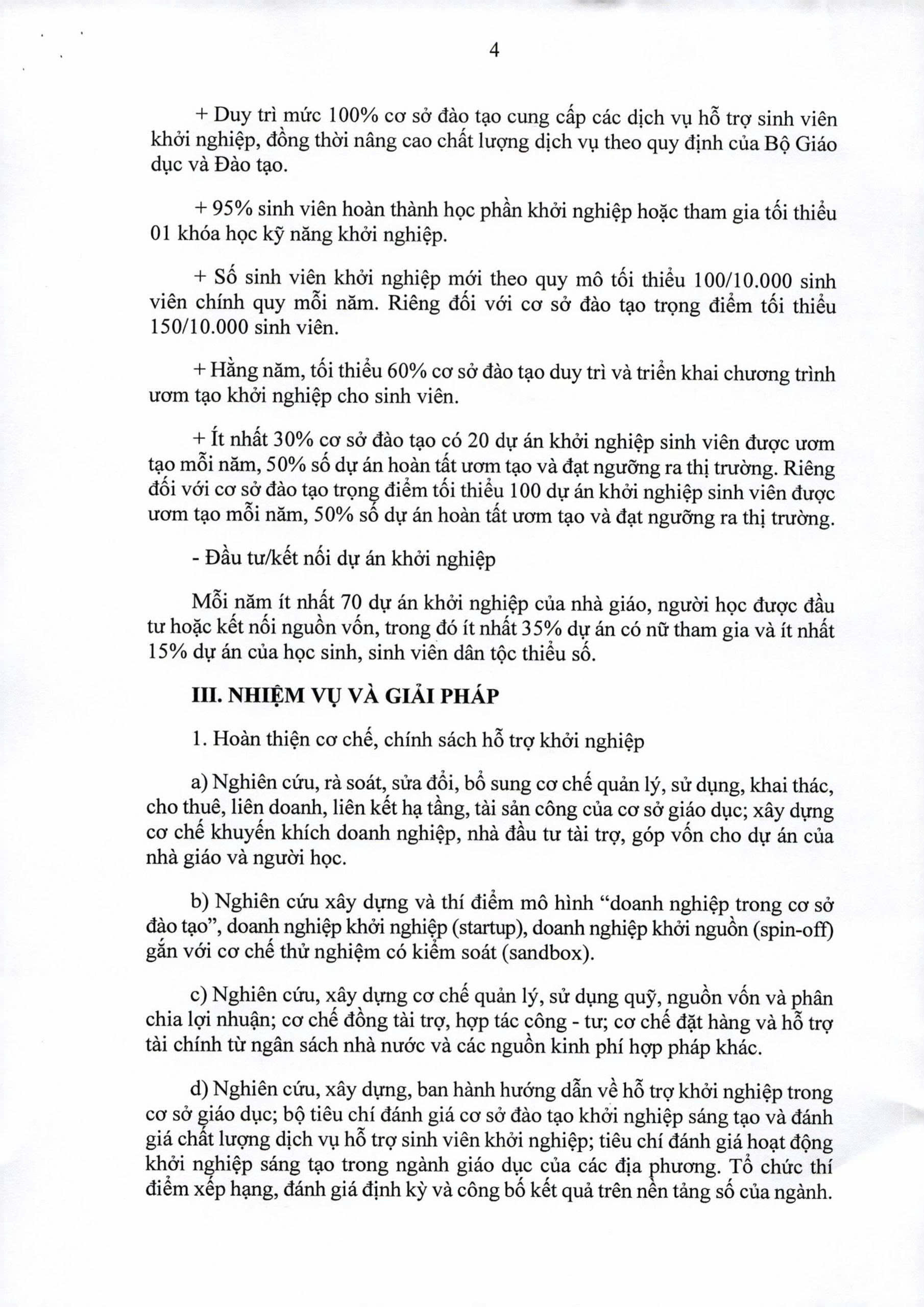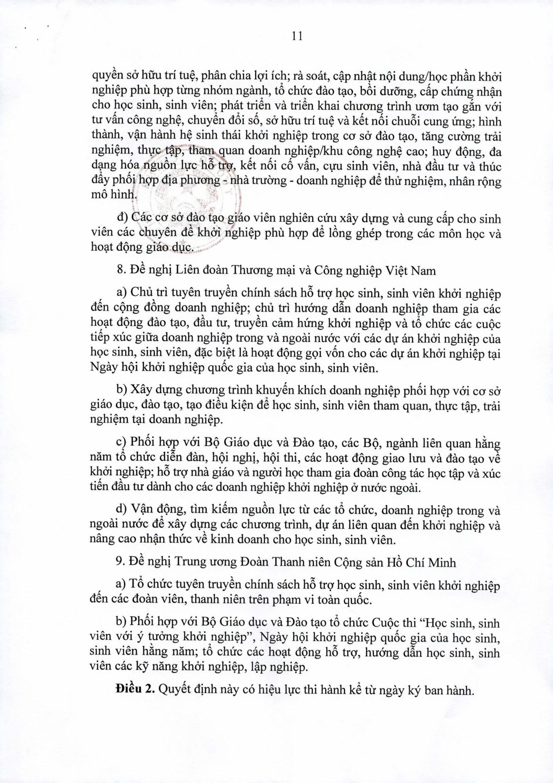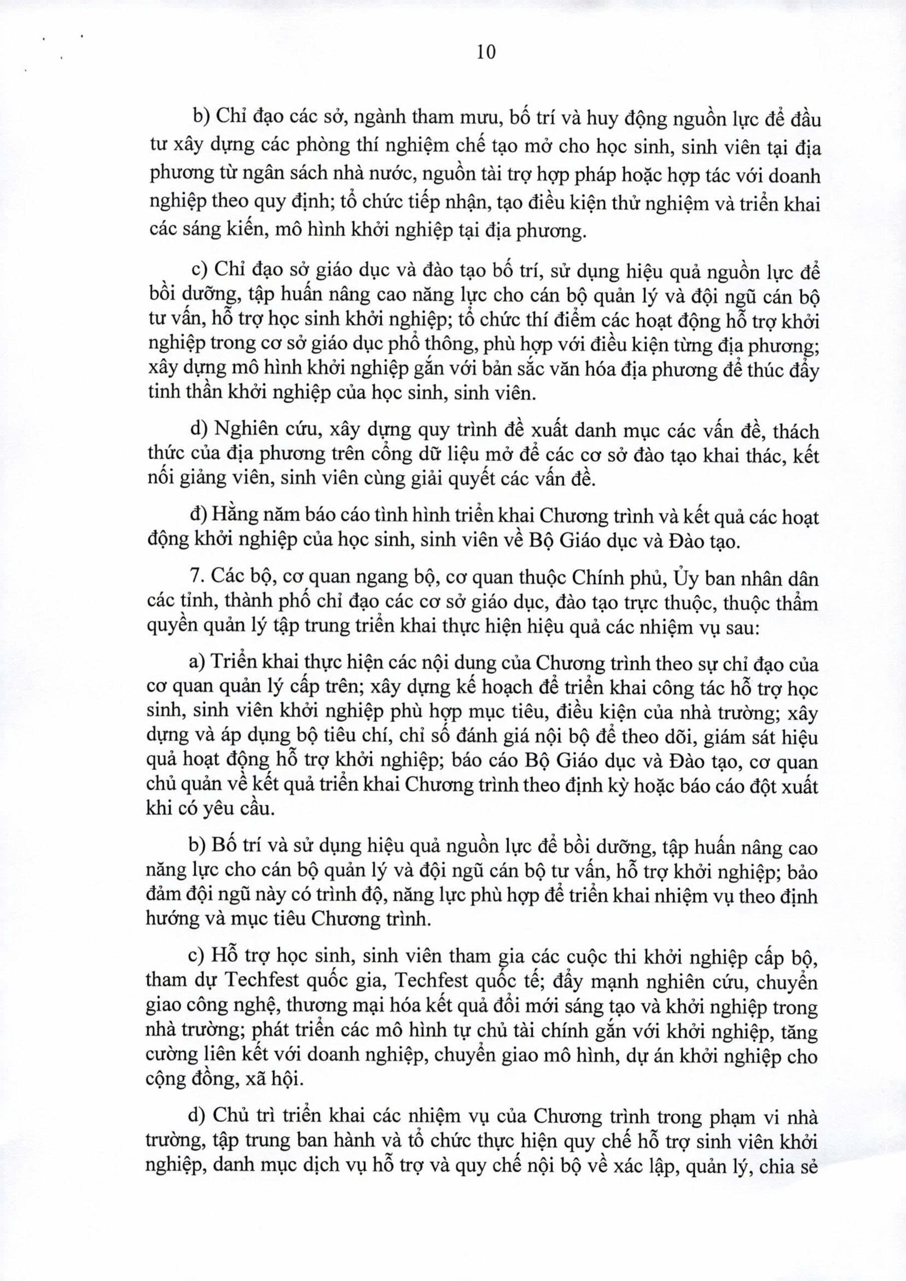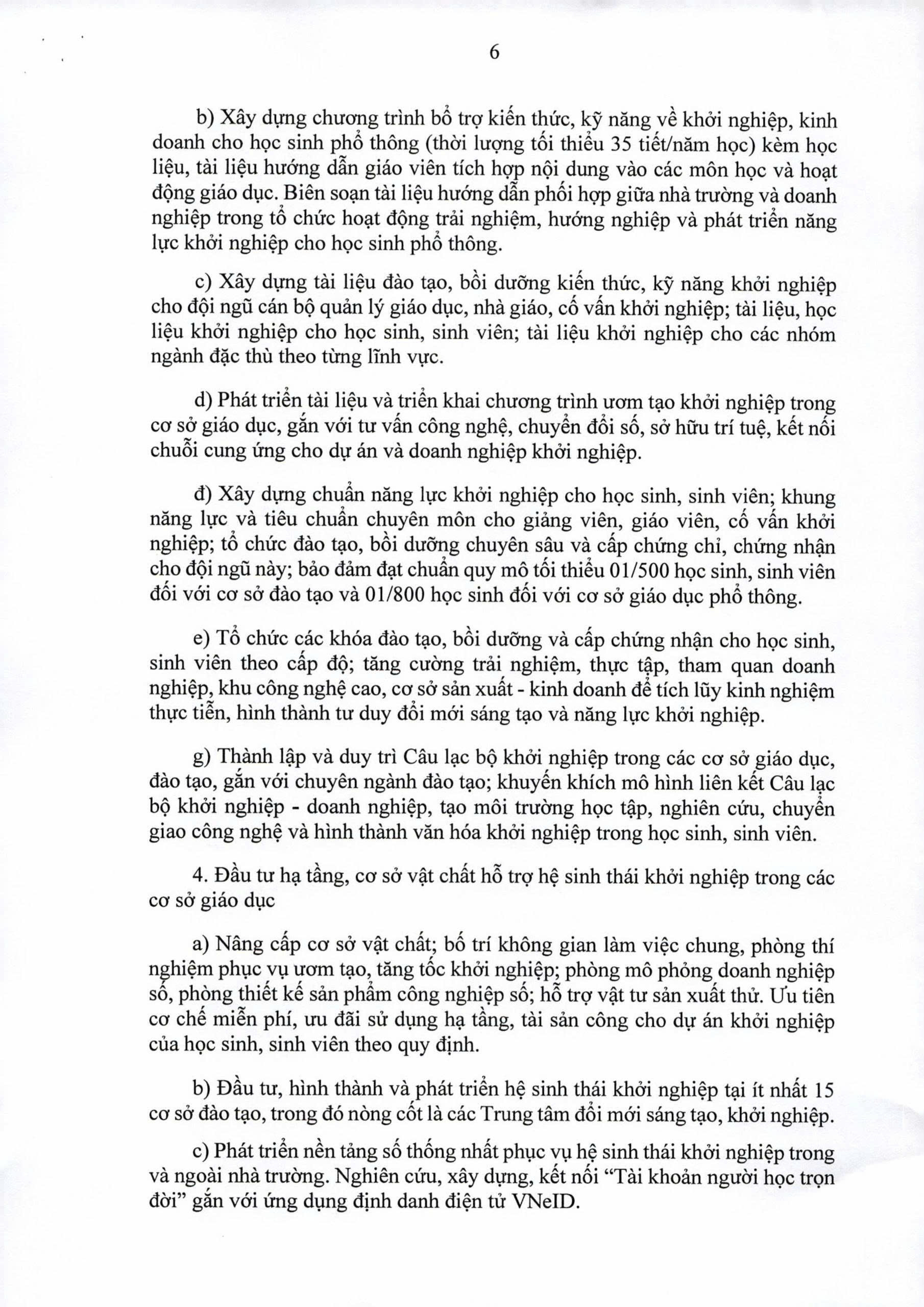 Hoàn thiện cơ chế, chính sách hỗ trợ khởi nghiệp trong cơ sở giáo dục.