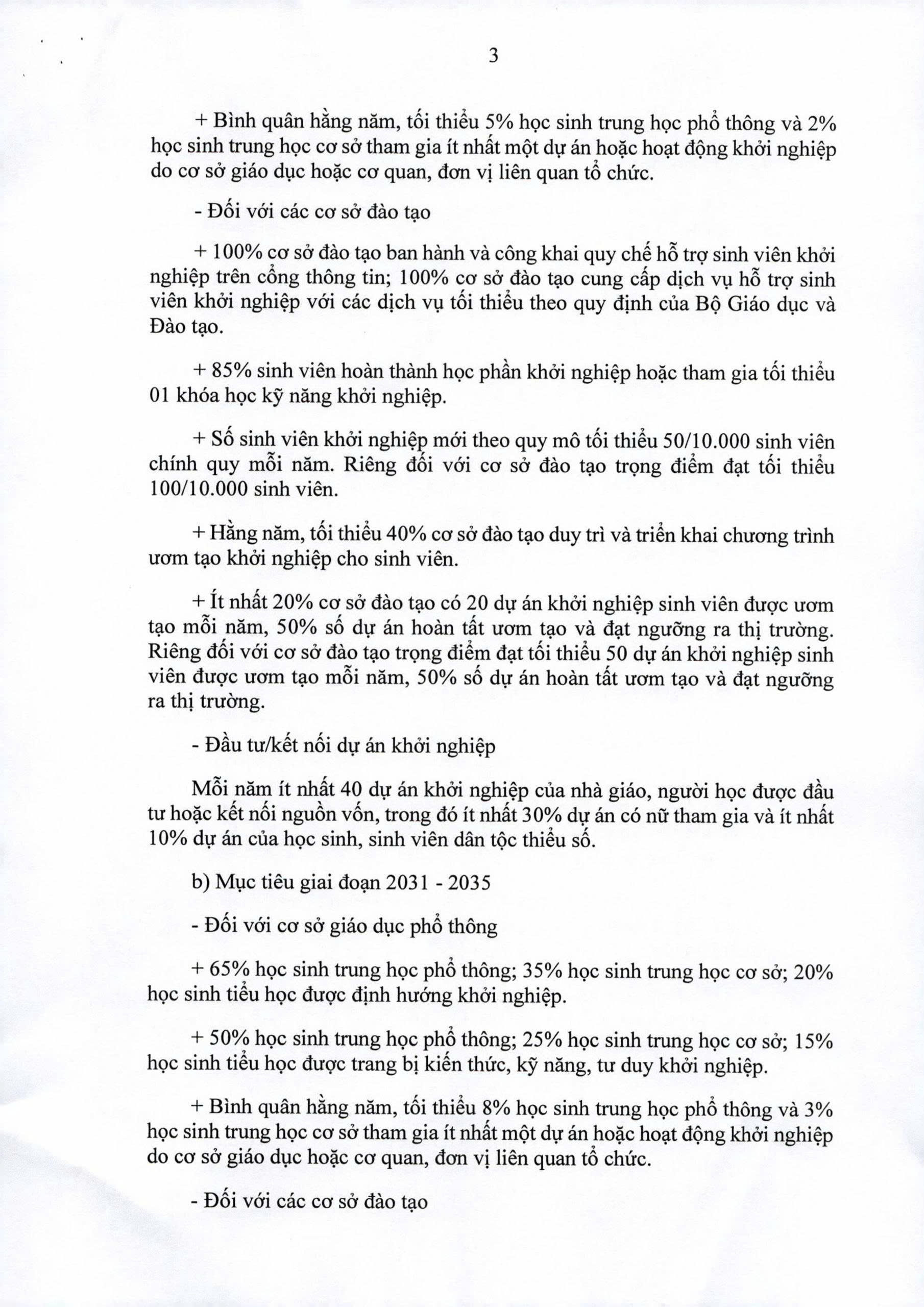 Bình quân hằng năm, tối thiểu 5% học sinh THPT tham gia ít nhất một dự án hoặc hoạt động khởi nghiệp.